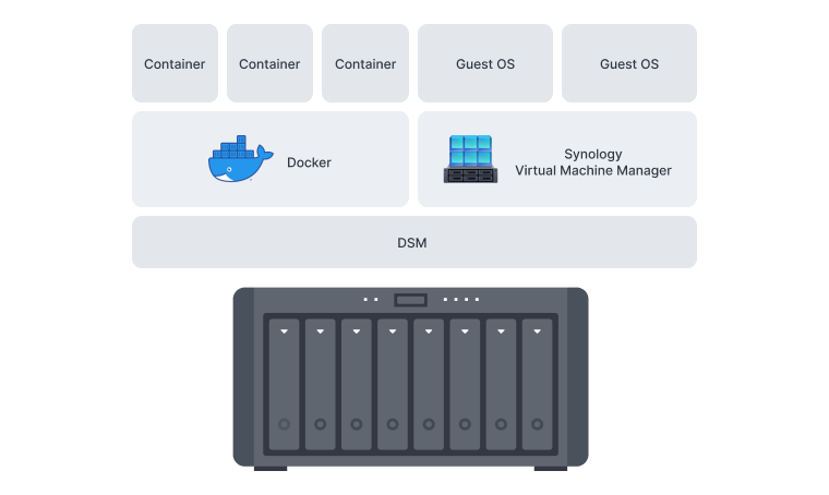 | 备注 | 高于以上建议数量不会导致应用程序停止操作,但可能导致响应时间较长。 利用 SSD 缓存可以显著改善性能。 For tested models with expandable memory, the maximum amount of RAM was installed. 在上述测试中使用了 Btrfs 文件系统和未加密的共享文件夹。