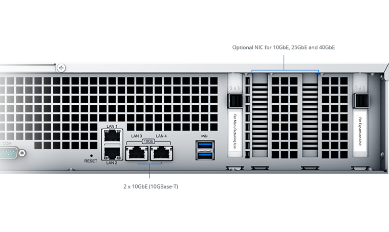 | 备注 | 针对使用 RAM 扩充进行测试的数据,所有内存插槽安装的 RAM 都已达到支持的容量上限。 在测试过程中,会安装此型号支持的 SSD 数量上限,并采用 RAID 5 配置。 测试标准基于此型号支持的同时连接数量上限。在测试期间,25% 的连接同时进行文件传输。传输过程仅确保连接不中断,无法保证传输速度下限。