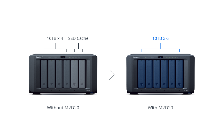 适用机种 | NVMe SSD | SA 系列:SA6400, SA3610, SA3600, SA3410, SA3400 23 系列:RS2423RP+, RS2423+ 22 系列:RS822RP+, RS822+, DS3622xs+, DS2422+ 21 系列:RS4021xs+, RS3621xs+, RS3621RPxs, RS2821RP+, RS2421RP+, RS2421+, RS1221RP+, RS1221+ 20 系列:RS820RP+, RS820+ 19 系列:DS2419+, DS1819+ 18 系列:RS3618xs, RS2818RP+, RS2418RP+, RS2418+, DS3018xs, DS1618+ 17 系列:RS18017xs+, RS4017xs+, RS3617xs+, RS3617RPxs, DS3617xs